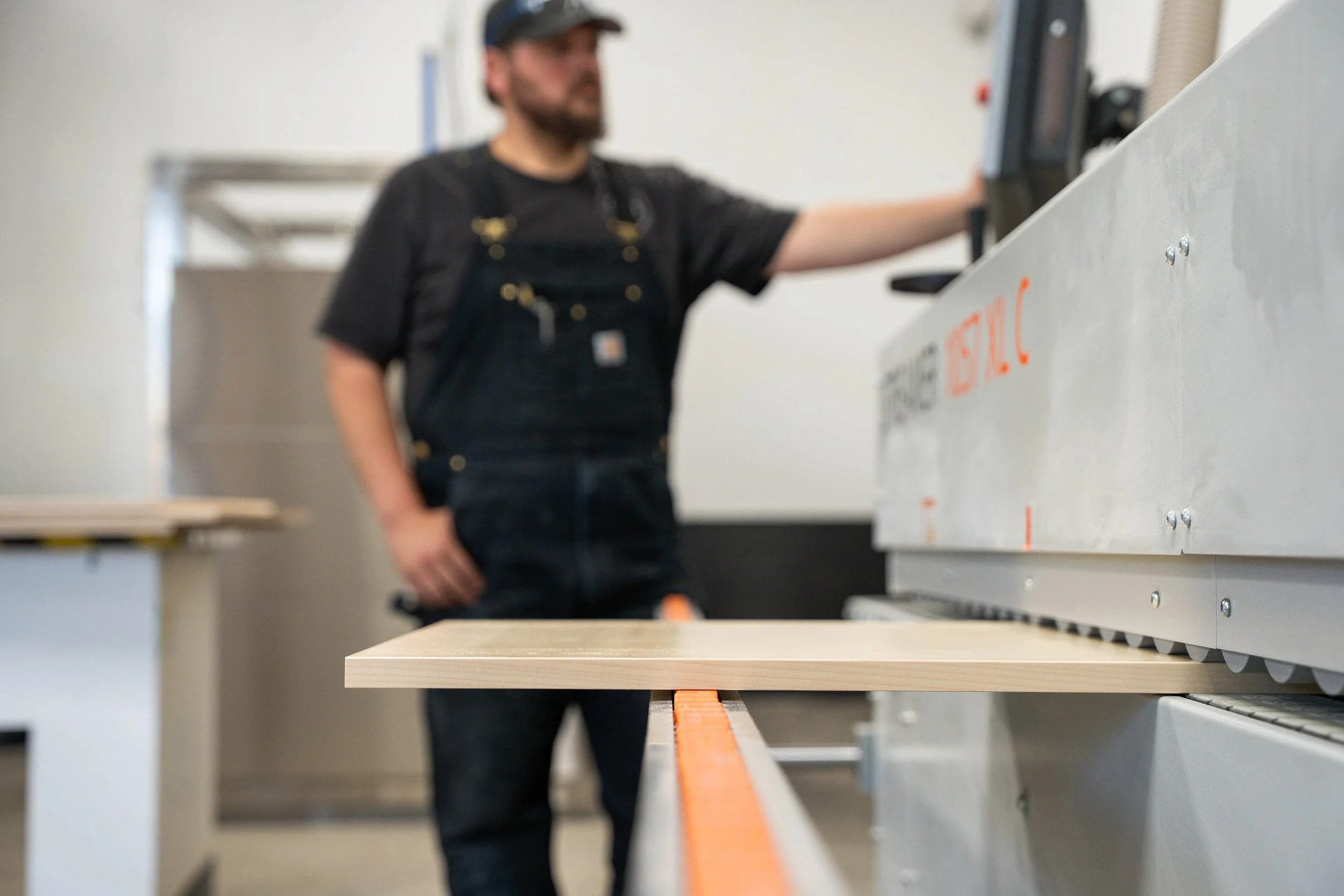 We specialize in solid wood cabinetry, veneered cabinets, and high-gloss acrylic cabinet fronts, offering a range of finishes from natural white oak to ultra-matte laminates and polished acrylics. All components are manufactured in-house at our 16,000 sq. ft. facility in Northern California, where state-of-the-art CNC routers, edgebanders, and skilled hands come together to produce flawless results at scale.