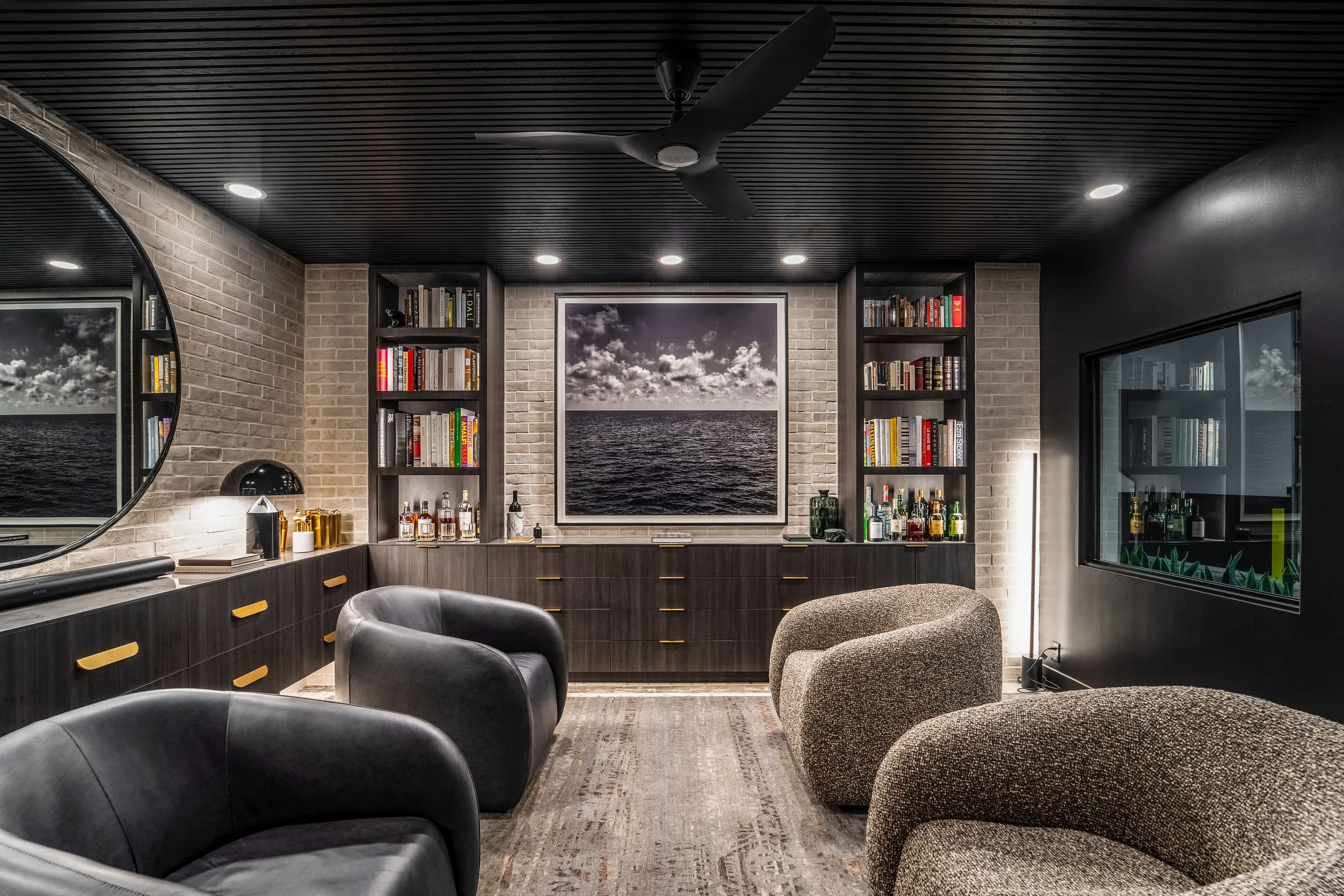 Blake Miremont personally designed this space, drawing on over 15 years of experience working alongside top interior designers and architects. The Drawing Room demonstrates our ability to take a project from concept to completion, offering everything from cabinet design to full-service interior design, including sourcing furniture, lighting, decor, and artwork. This space stands as a working model of what we can create for residential or commercial clients who want a fully custom, premium experience.